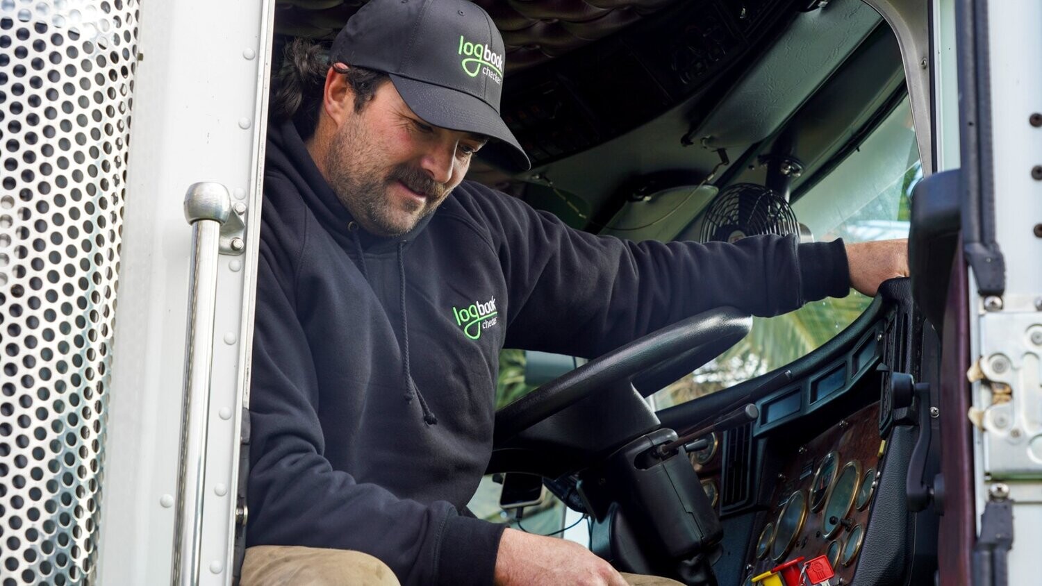 Traditional fleecy hoodie with embroidered logbook checker logo on top left chest.