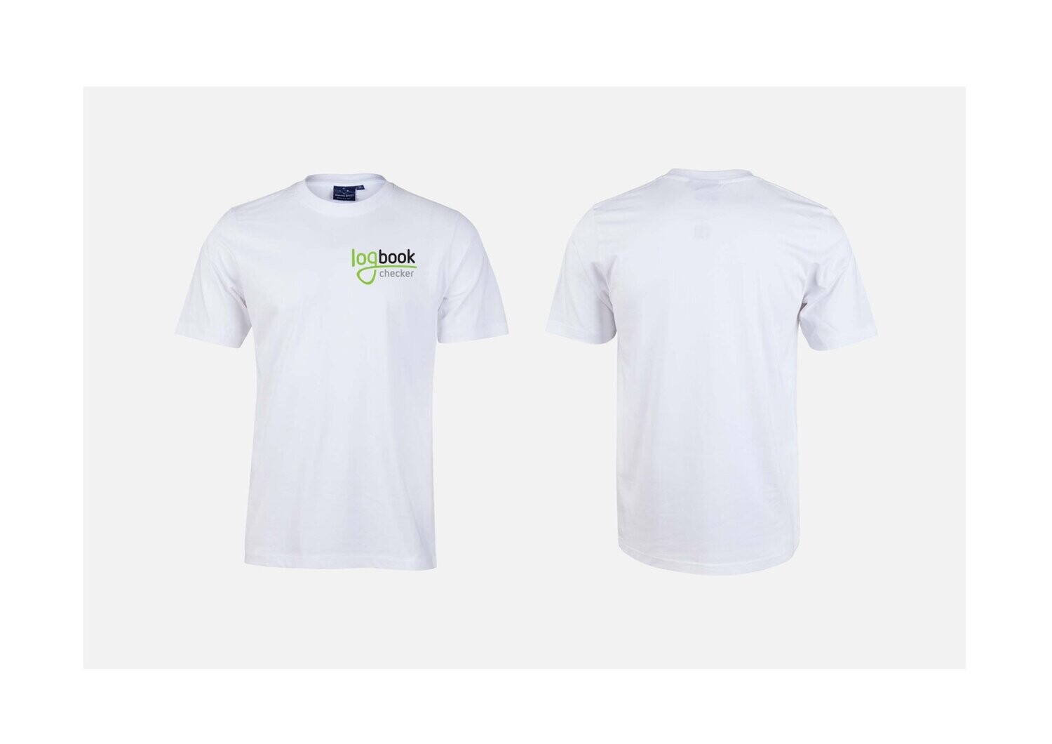 Crew neck design provided with twin stitching and logbook checker logo embroidered on top left chest.